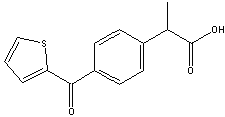Suprofen 【Chemical Name】: para-(2-Thenoyl) hydratropic acid 【Description】: Suprofen is in a class of drugs called nonsteroidal anti-inflammatory drugs. It reduces pain and inflammation in the eyes. 【Structure】: